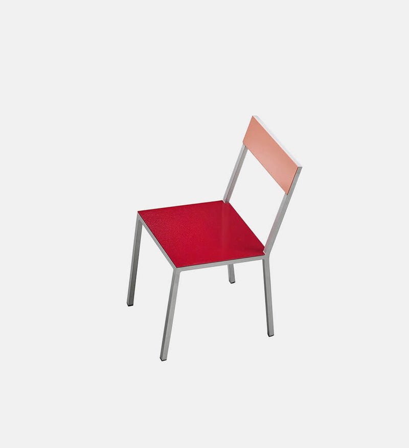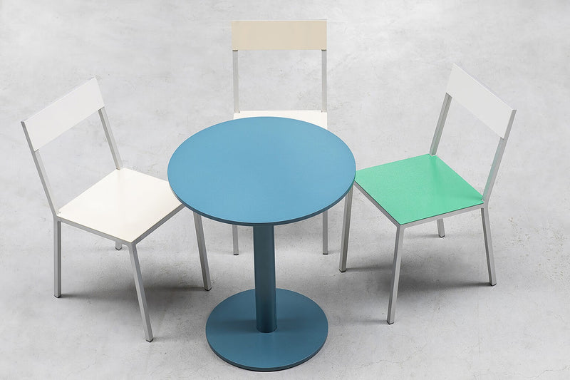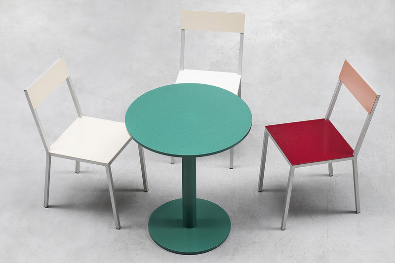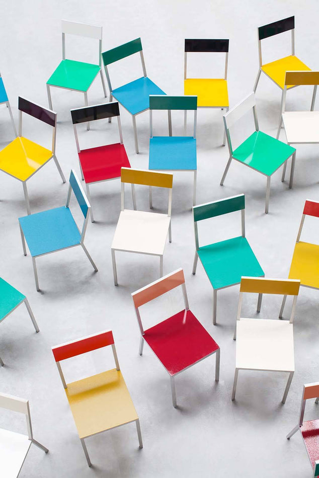 The alu chair is an industrial version of the ‘chair 2’ Muller Van Severen created for the Bahrain pavilion at the World Expo in 2015. The alu chair is made of aluminium and is suited for both indoor and outdoor use thanks to the beewax treatment and a UV protection lacquer. Muller Van Severen created sixteen color combinations, which is a larger number than they usually work with. They wanted the user to be able to create a landscape of color. The colors of the chair determine the atmosphere of the space: either playful or rather toned down.