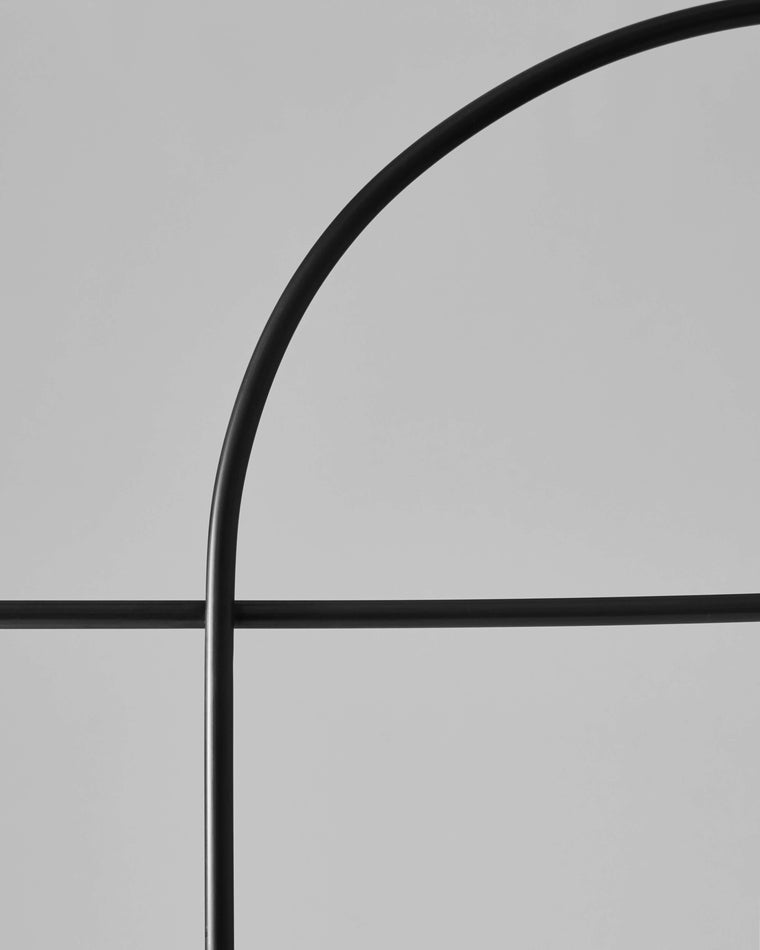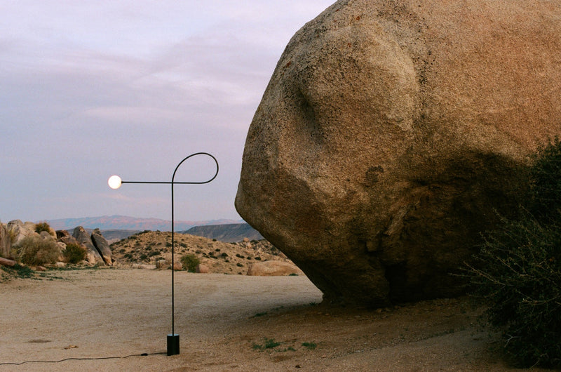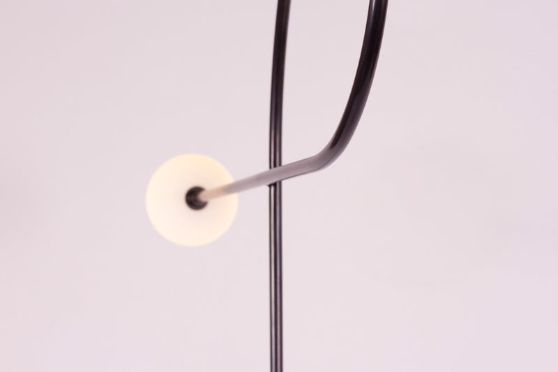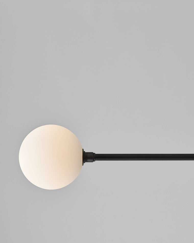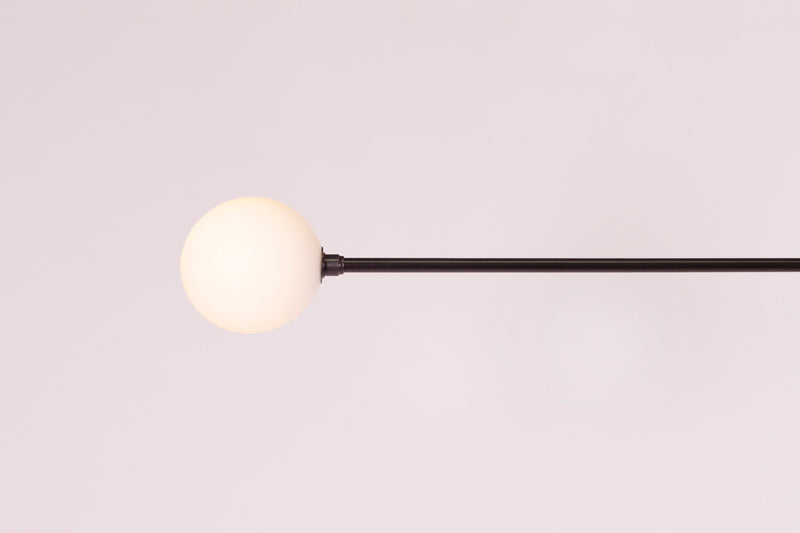 Blackened Steel, Hand blown frosted glass.