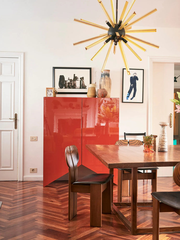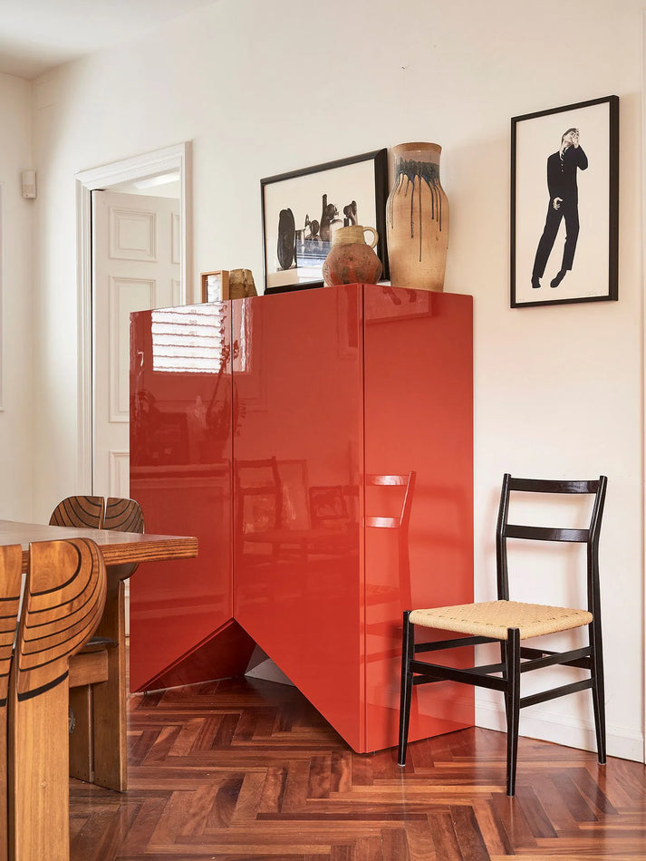 Containers, shelves and doors are made of MDF and gloss lacquered.