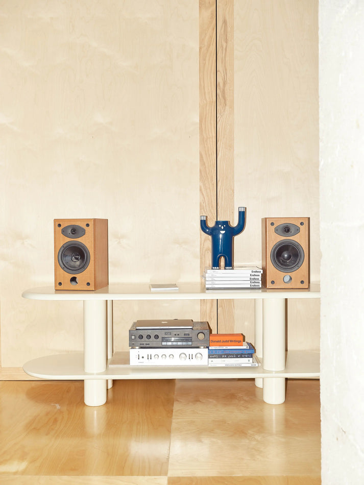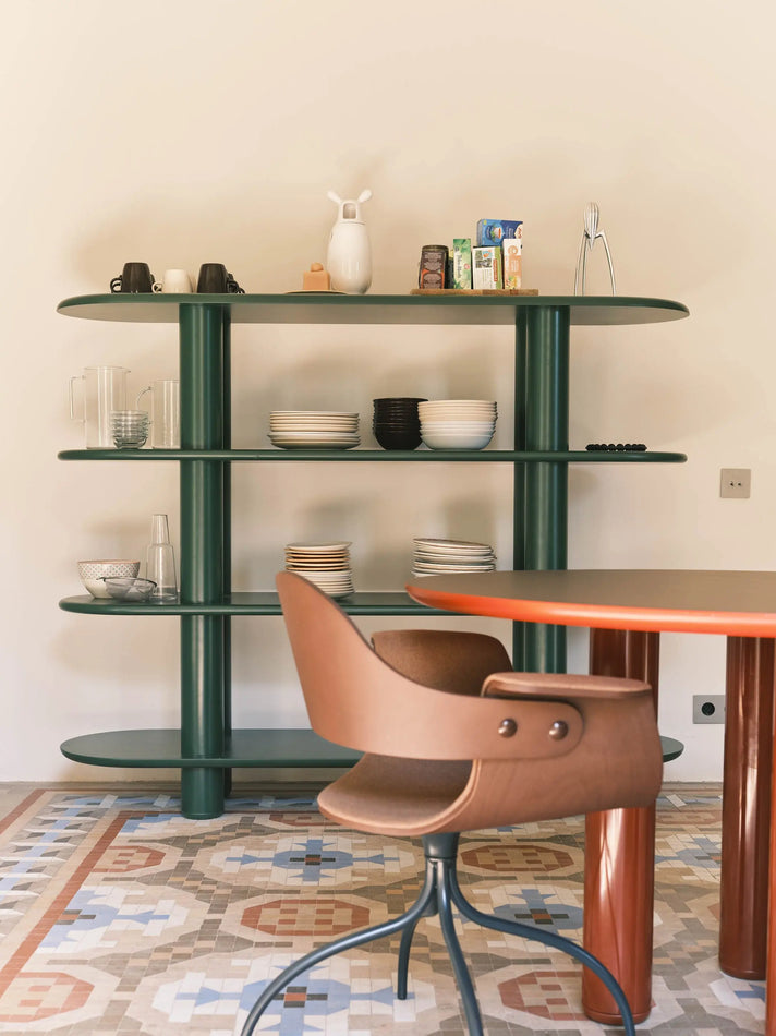 Shelves: 3 cm MDF lacquered in satin finish