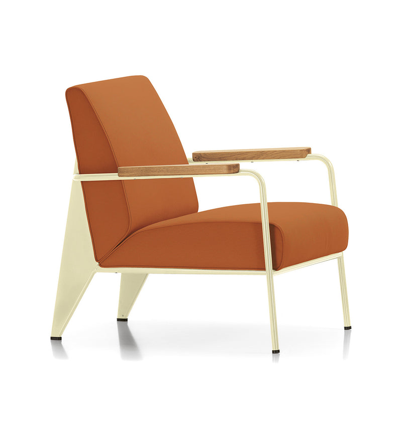 Developed by Jean Prouvé in 1939, the Fauteuil de Salon is a typical example of the distinctive structural aesthetic of his designs. The armchair's understated character suits a wide variety of interiors, and its ample upholstery and oiled, solid wood armrests emanate inviting comfort.Contact us for colors, styles & details.