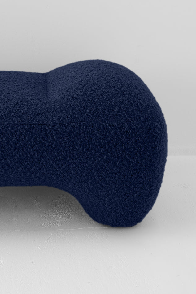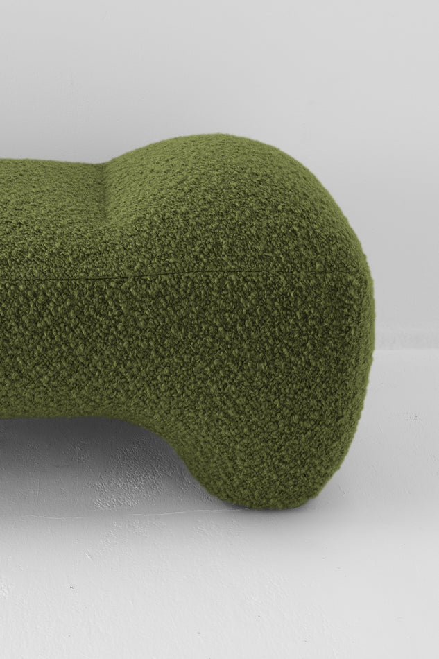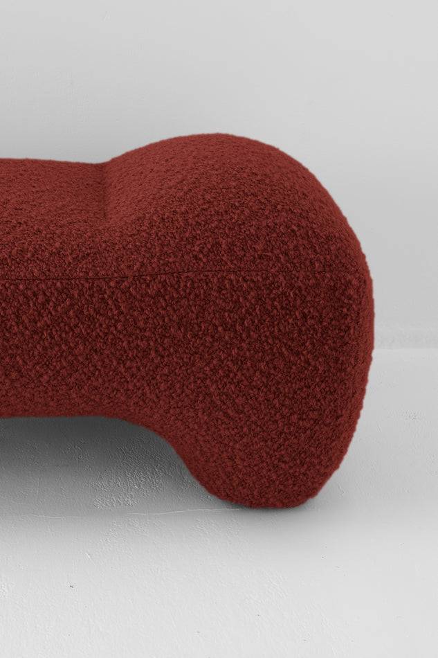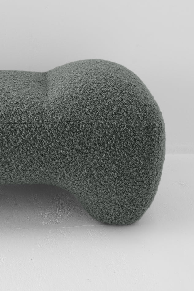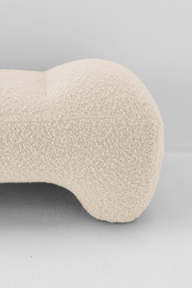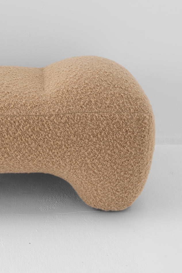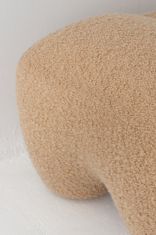 Its compact yet expressive proportions echo the collection’s anthropomorphic softness, making it suited to hallways, living spaces, or commercial settings. It is offered here in Pierre Frey’s chunky wool bouclé “Opio”, however please enquire for more fabric options or C.O.M.