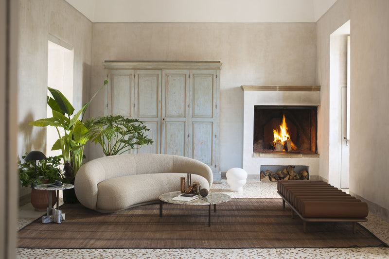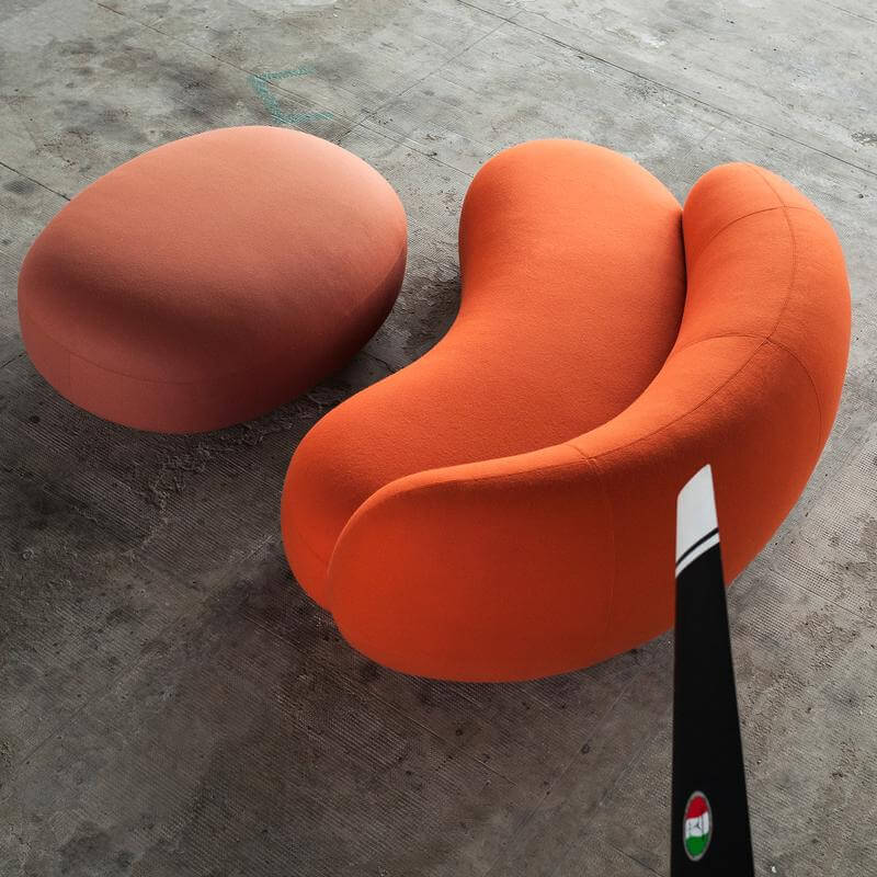 Soft, enveloping shapes characterize this family of upholstered pieces. Julep is influenced by the 1950s Avant-Garde movement, drawing upon its simplicity and grandeur, refined by a contemporary, romantic, feminine allure. Star of the series is the sofa, whose generous rounded lines provided evolutionary DNA for the entire collection – including an armchair, a chaise-longue and an ottoman – in an interplay of proportions and shapes that gave rise, little by little, to all the other versions. Fully upholstered, the seats look ample and full, yet convey a sense of lightness, thanks to the recessed base that invisibly lifts them off the floor. Designed for home decor, their inviting appeal encourages cozy comfort and relaxation, making the Julep seating options also ideally suited to contract venues.