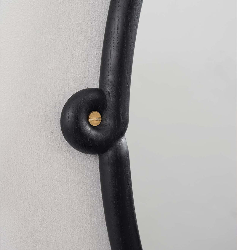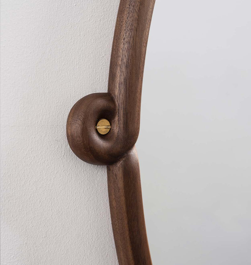 Miller's Knot collection is a distillation of a project done for the Heller Gallery. Large mirrors were framed and covered with intertwined “vines”. The Knot collection uses the smallest detail from those pieces to break the platonic frames and create a hanging points for each mirror.