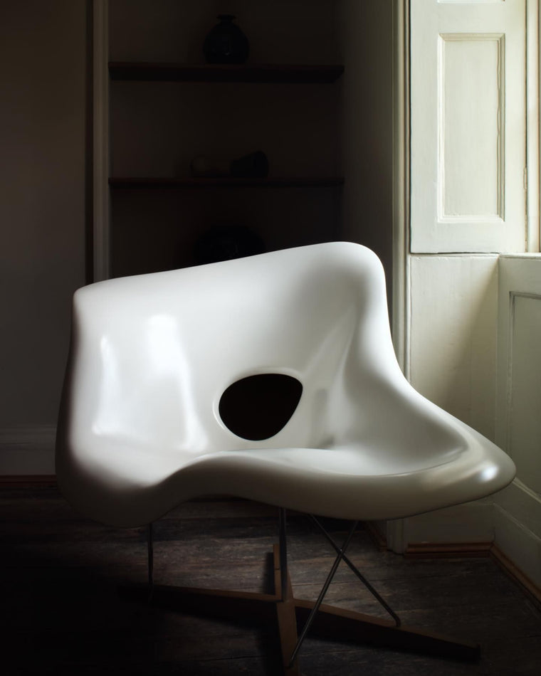 Charles and Ray Eames designed the elegant lounge chair La Chaise for a competition at the Museum of Modern Art in New York in 1948. It was inspired by the 'Floating Figure' sculpture by Gaston Lachaise. The lounge chair has long since established itself as an icon of organic design.