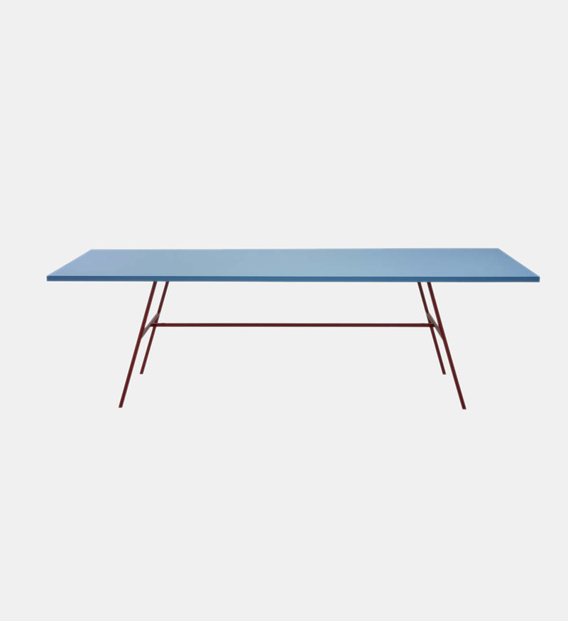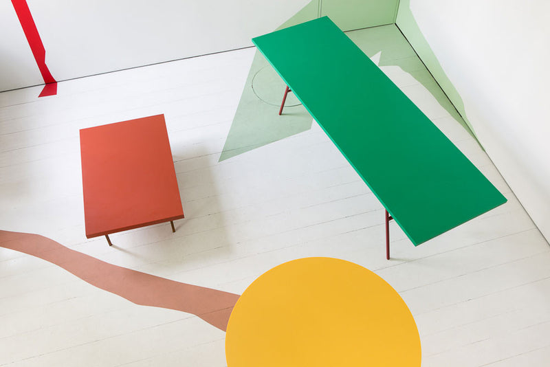 Long table is an object first shown at New Work, a solo exhibition by Muller Van Severen back in 2014. Although the exhibition mainly consisted of glossy lacquer surfaces, Muller Van Severen presented three polyethylene tables on the side, mounted on rusted steel and red lacquered steel threshes. Together with ‘low table’ and ‘round table’, this ‘long table ’ shows the continuation of Muller Van Severen’s fascination for the material polyethylene. It is a soft and tactile plastic, when cut through, the texture of the material really comes forward. It is all handwork done in Belgium.