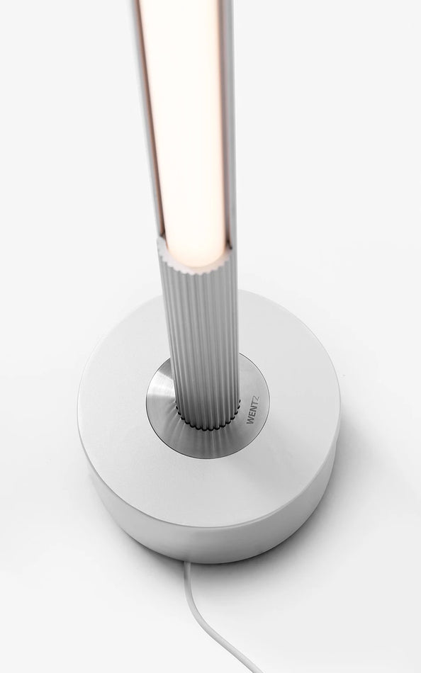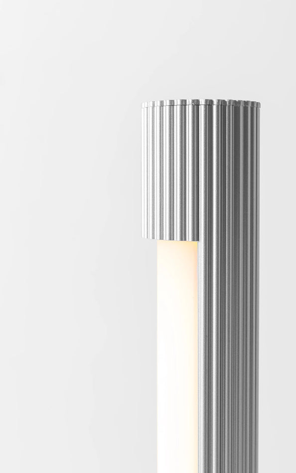 Aluminum structure with liquid painting (Aluminum version) or powder coating (Black version), Steel base with aluminum cover and brushed stainless steel detail. Opal acrylic diffuser.