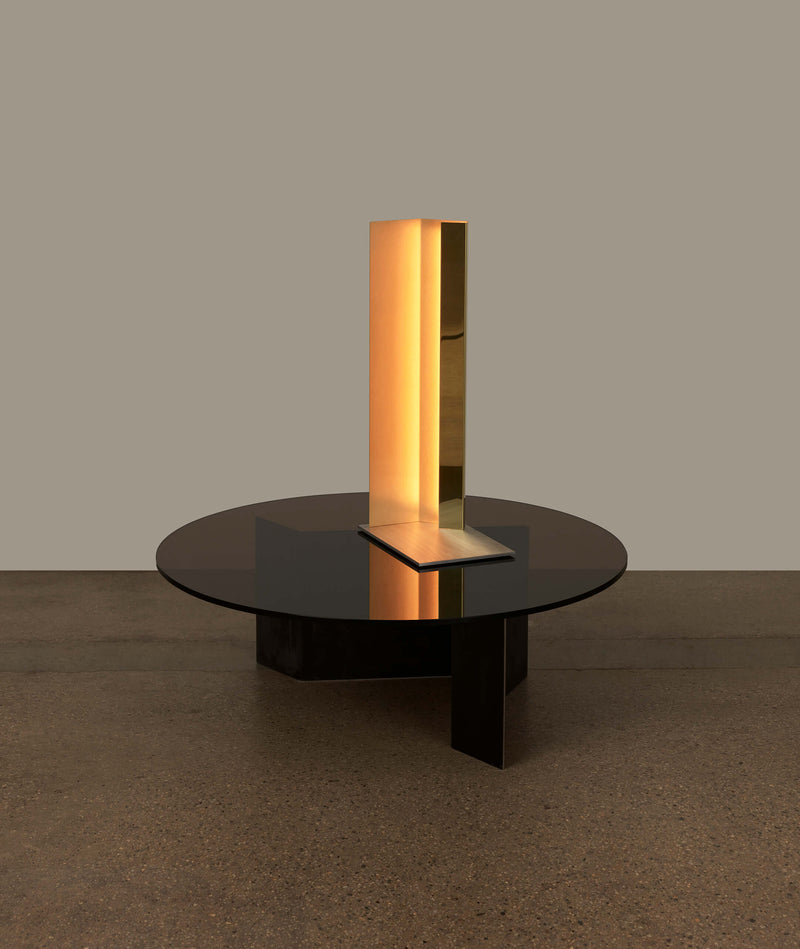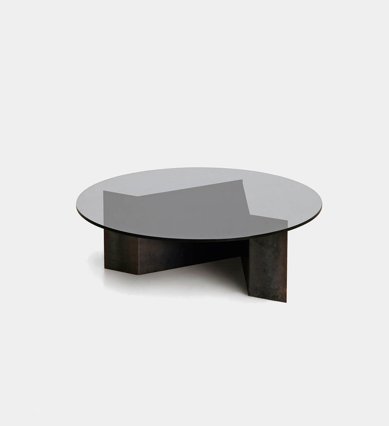 Glass Top - Clear or Smoked Base - Fine Satin Stainless Steel, Blackened Steel.