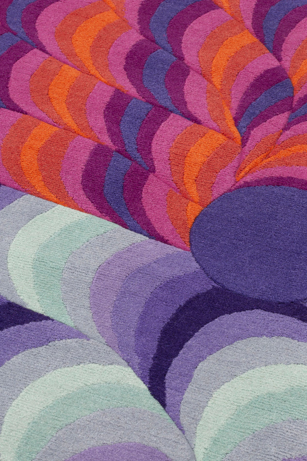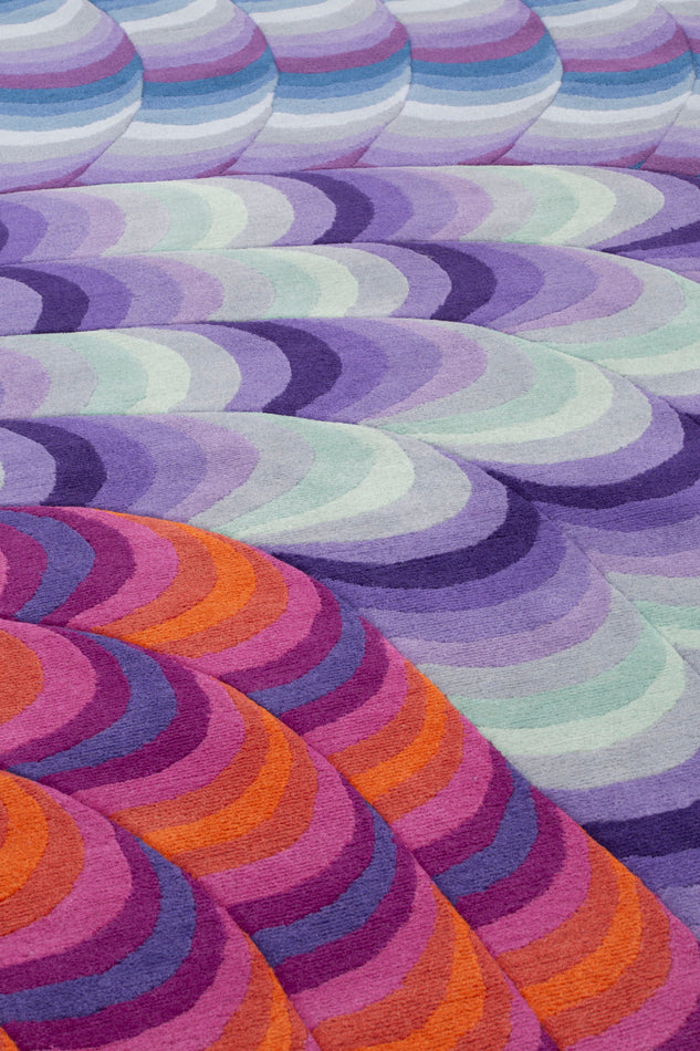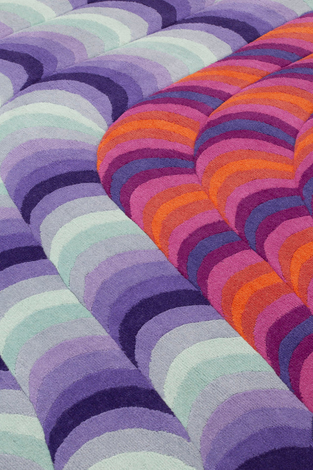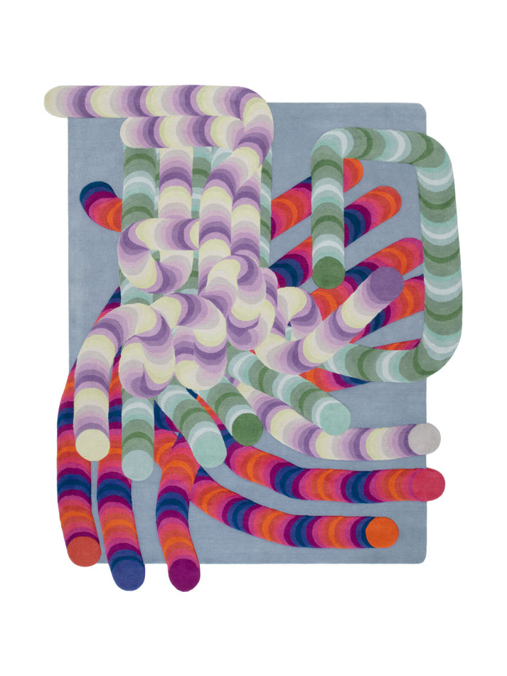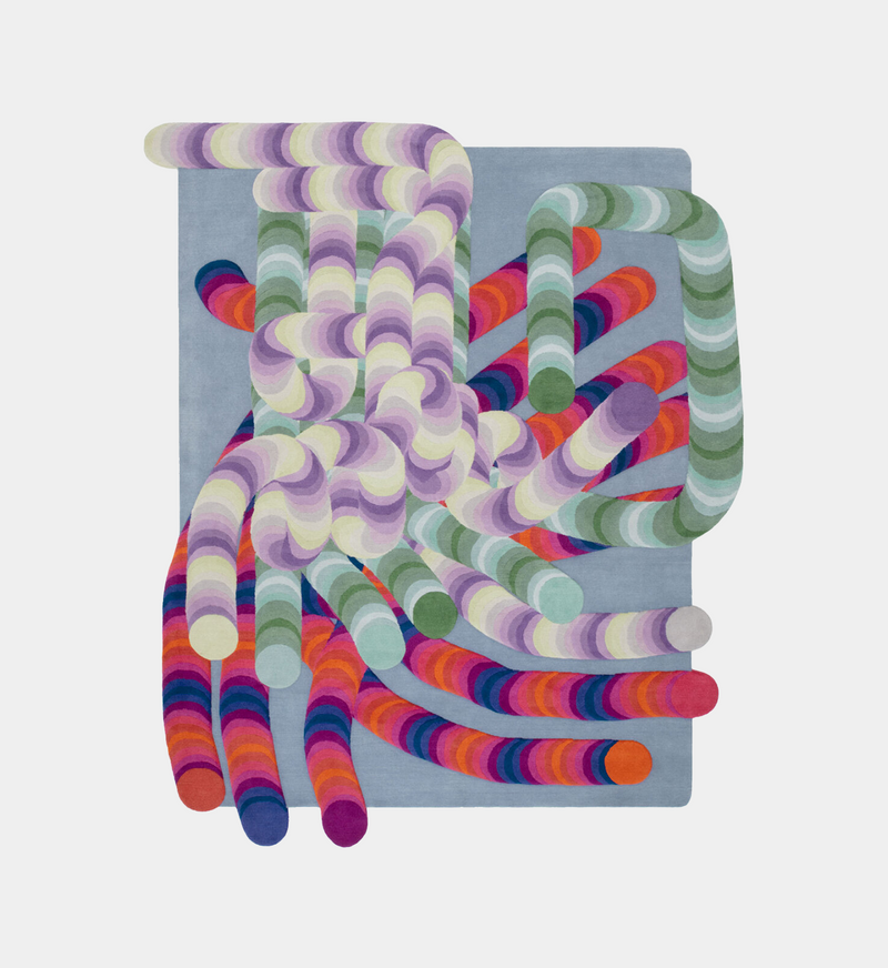 Research which began with the Slinkie Collection for cc-tapis, Pipeline is the translation of Urquiola’s digital artworks into an artisanal product. A series of connected tubes emerge from the surface of the rug and create a labyrinth of color whose volume gives a sense of depth to the rug. Multiple chromatic evolutions that develop through circular movements, overlapping on different levels of Himalayan wool, focusing the gaze on the space outlined by the tubes. Also available in round and as a runner.Price upon request.