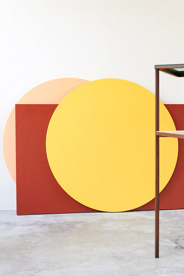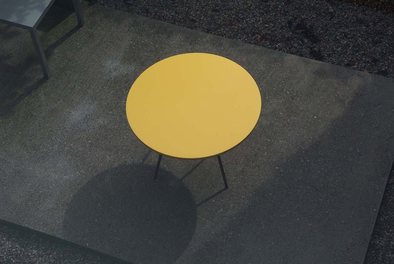 Round table is an object first shown at New Work, a solo exhibition by Muller Van Severen back in 2014. Although the exhibition mainly consisted of glossy lacquer surfaces, Muller Van Severen presented three polyethylene tables on the side, mounted on rusted steel and red lacquered steel threshes. Together with ‘low table’ and ‘long table’, this ‘round table’ shows the continuation of Muller Van Severen’s fascination for the material polyethylene. It is a soft and tactile plastic, when cut through, the texture of the material really comes forward. It is all handwork done in Belgium.