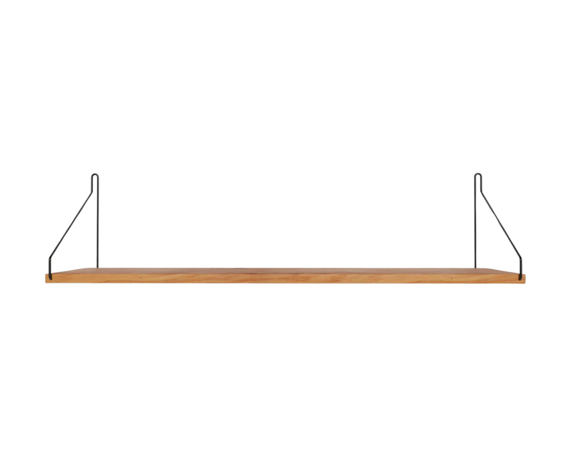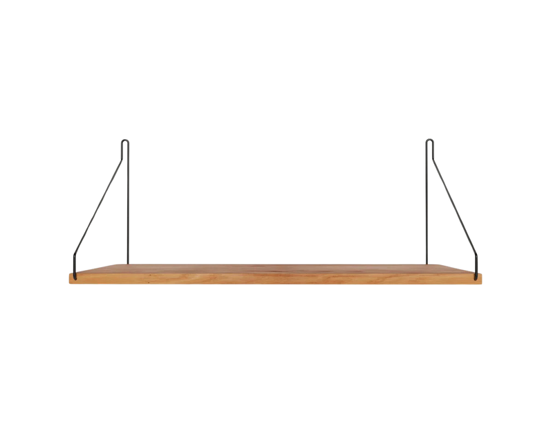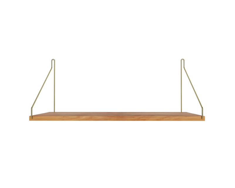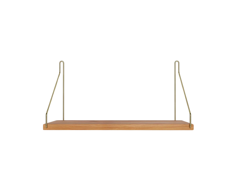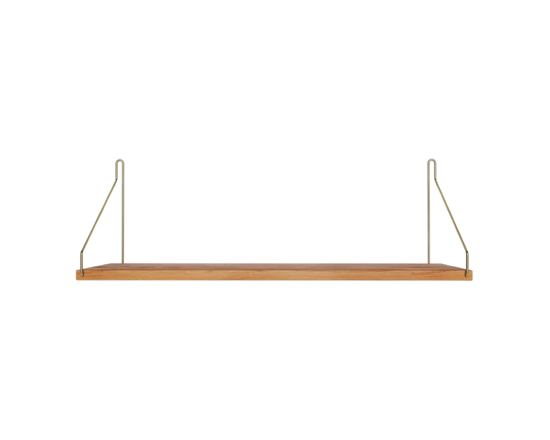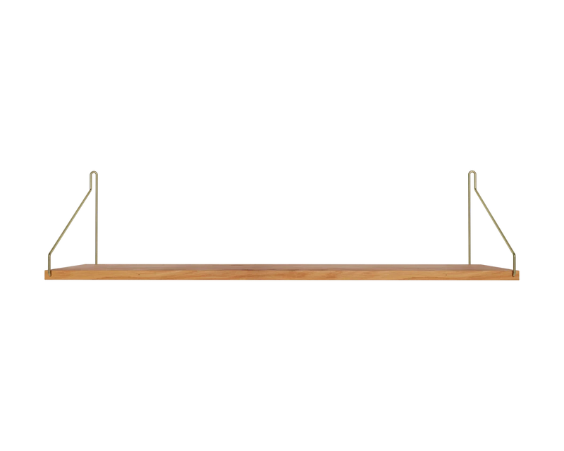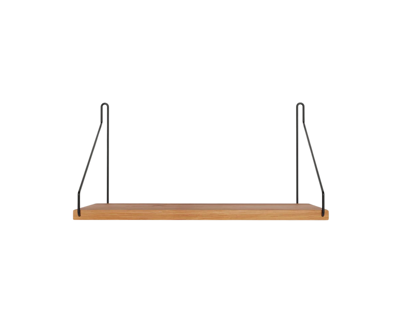 Solid natural oiled oak shelf | Black, brass, or stainless steel brackets.