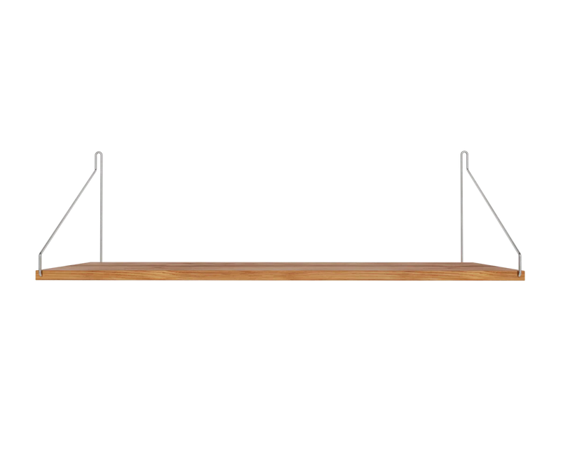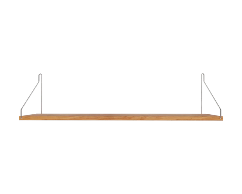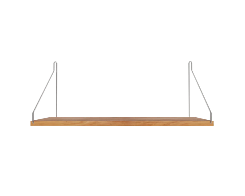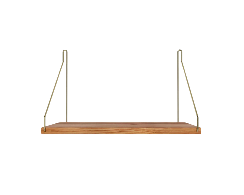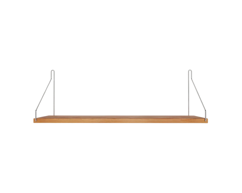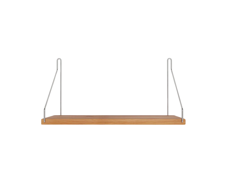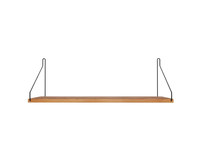 Solid natural oiled oak shelf | Black, brass, or stainless steel brackets.