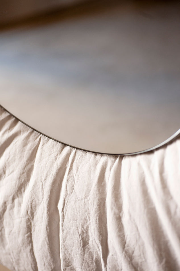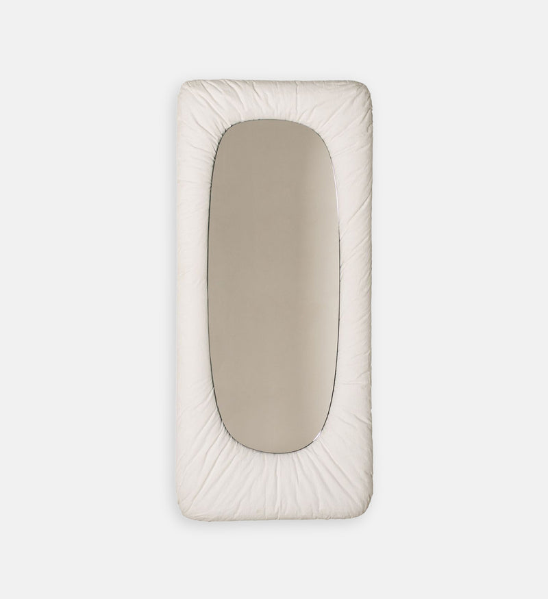 Stellar takes Tacchini's traditional upholstery and brings it to unexpected places, such as the frame of this soft and extroverted mirror. It is part of the Cosmic collection created with Faye Toogood.