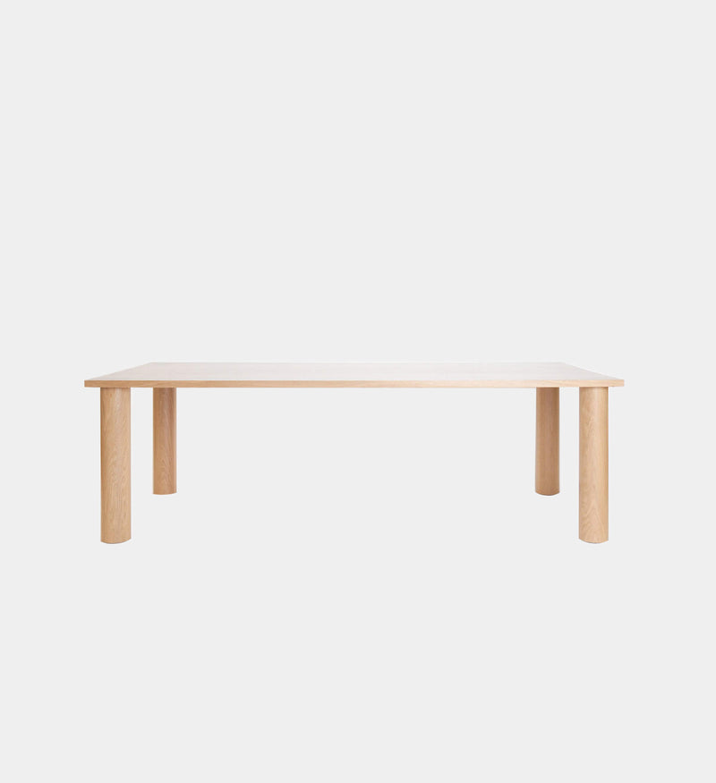 Crafted from solid wood, the UNA dining table offers a refined yet substantial form. Its clean lines and cylindrical legs create an understated yet elegant presence. Customizations available upon request. Made to order.