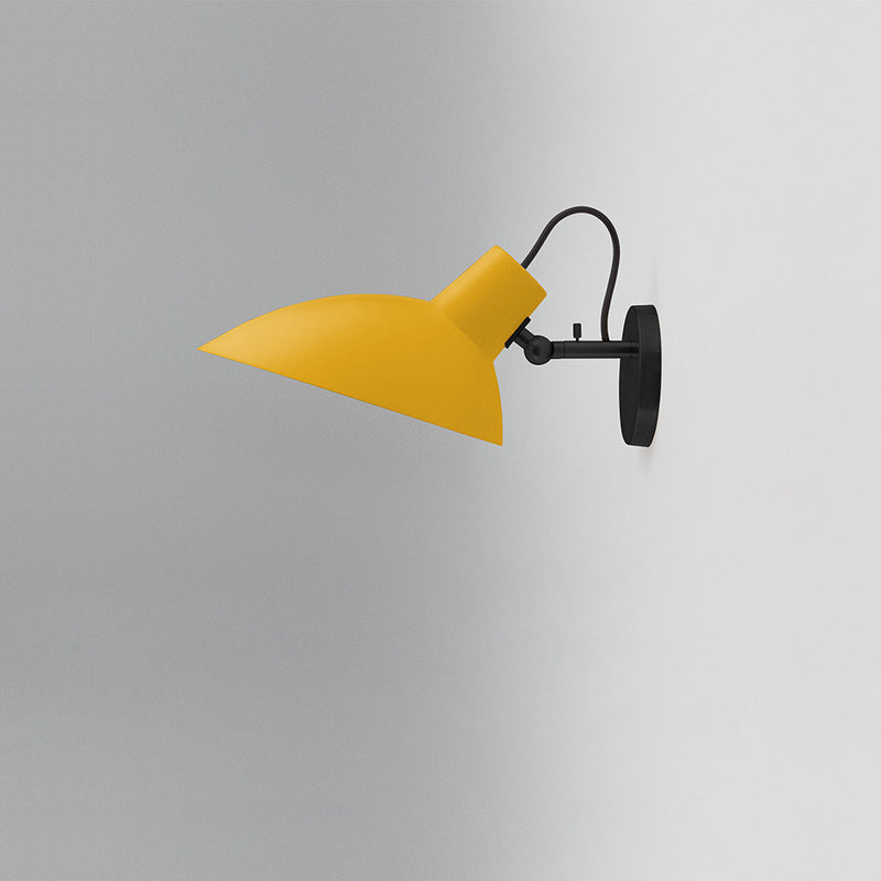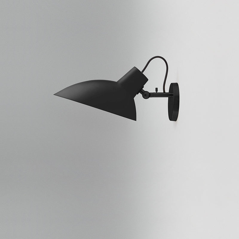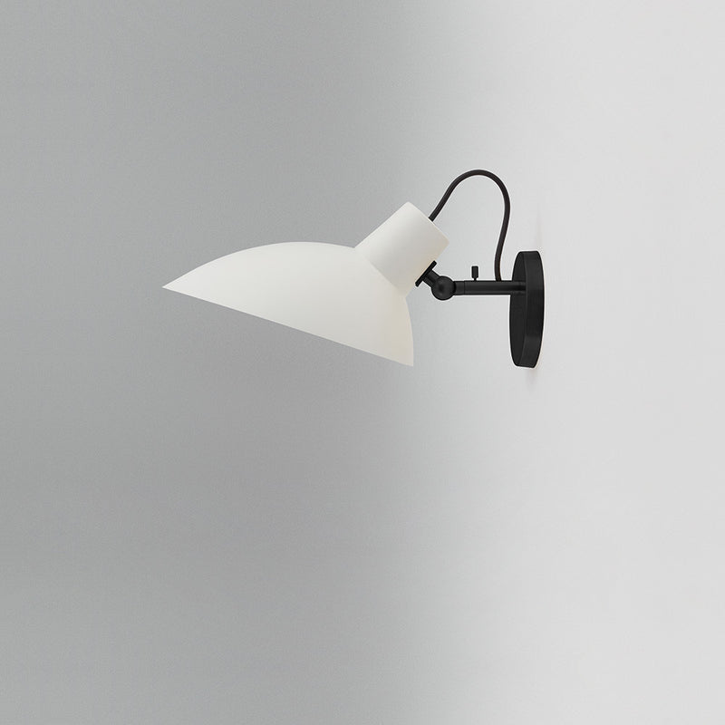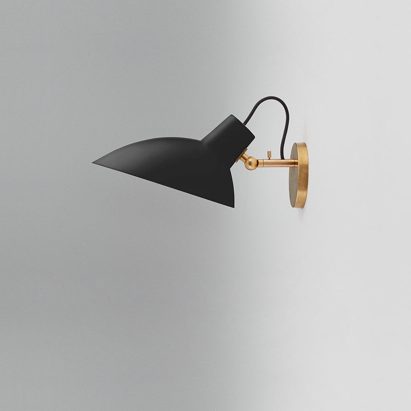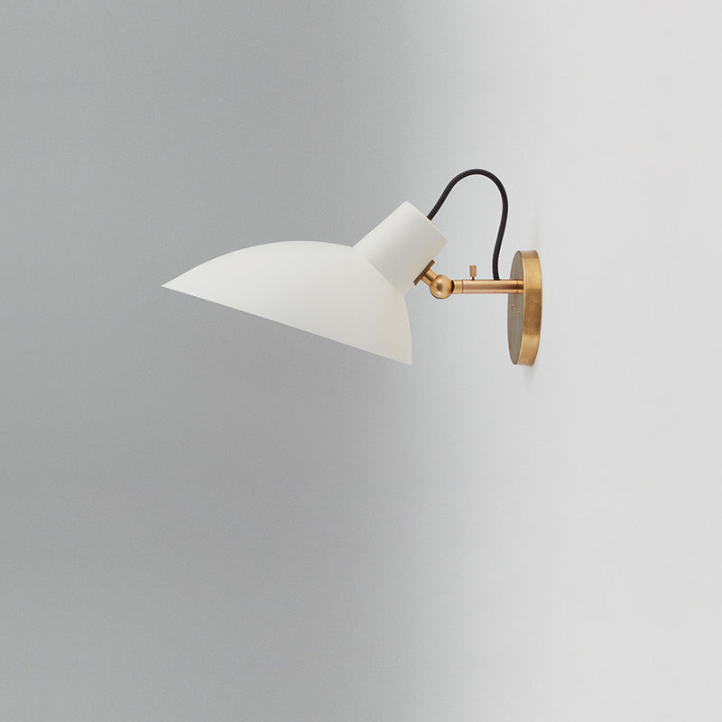 The VV Cinquanta features an elegant and versatile poseable direct light source that can swivel and tilt. The Wall model is mounted on a brass fixture, allowing the reflector to rotate 350 degrees, and can be angled 160 degrees, providing a wide range of lighting compositions.